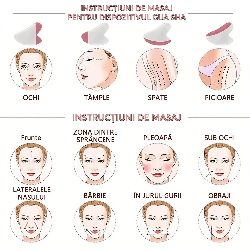 Absorbție Mai Bună a Produselor: Masajul cu Gua Sha după aplicarea serului sau a uleiului facial ajută ingredientele active să pătrundă mai adânc în piele.