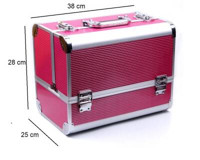 1. Geanta Produse Cosmetice din Aluminium – Gold cu Cristale – este perfectă pentru rutina ta zilnica, avand un spaţiu excelent de transport şi depozitare a produselor cosmetice, de manichiură si hairstyling.